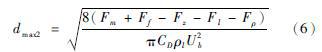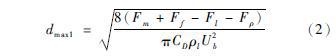 由式(1)整理可得,在膜片鼓起時氣泡直徑dmax1: