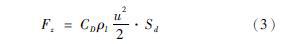 式中:Sd為球形氣泡在垂直方向上的投影面積,m2;u為氣泡向下振動時脫離孔口的瞬時速度?