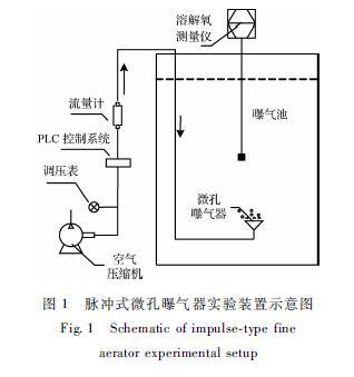 脈沖式微孔曝氣器實驗裝置示意圖如圖1所示,主體是一個0.8m×0.6m×1m的矩形曝氣池,為了便于觀察實驗現象,曝氣池用透明的有機玻璃制成?